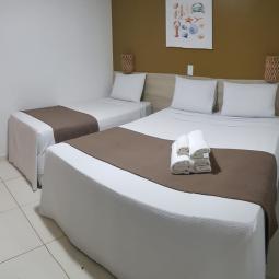 Os quartos incluem TV via satélite, frigobar e banheiro privativo com chuveiro. Além disso, apresentam decoração em estilo de praiana, são bem iluminados e conta com piso frio.
